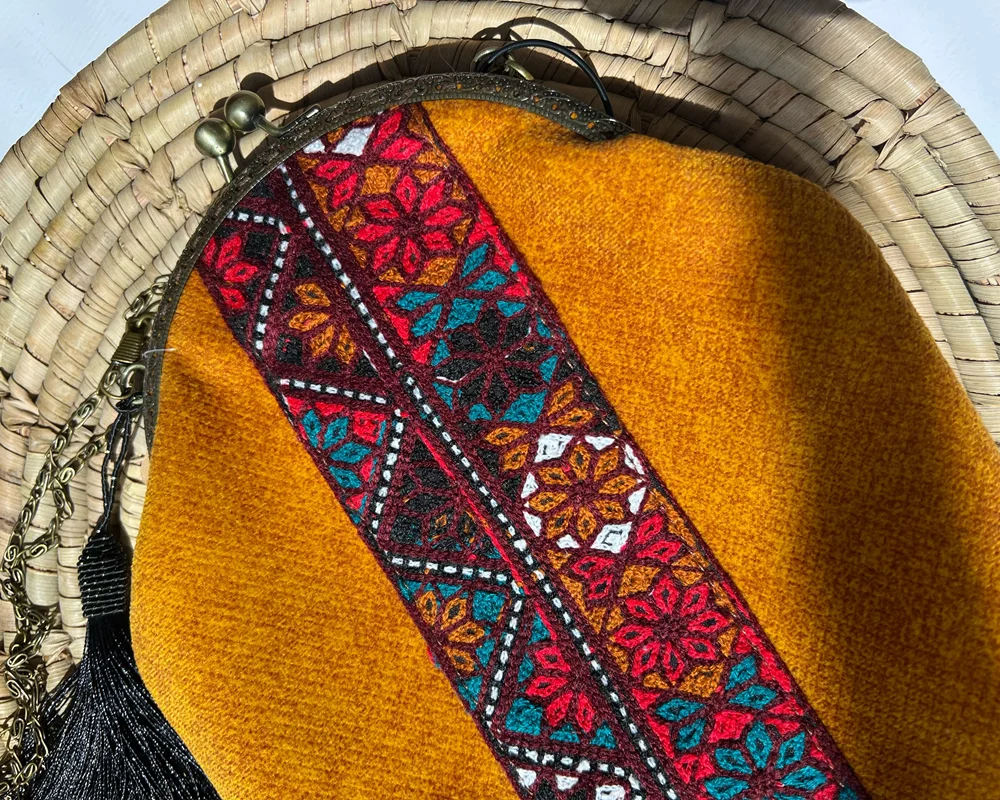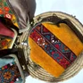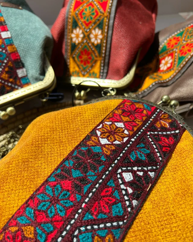 تکه های چرم کار شده بر روی درب کیف چرم طبیعی است.