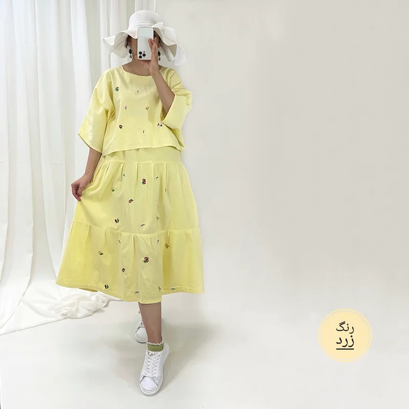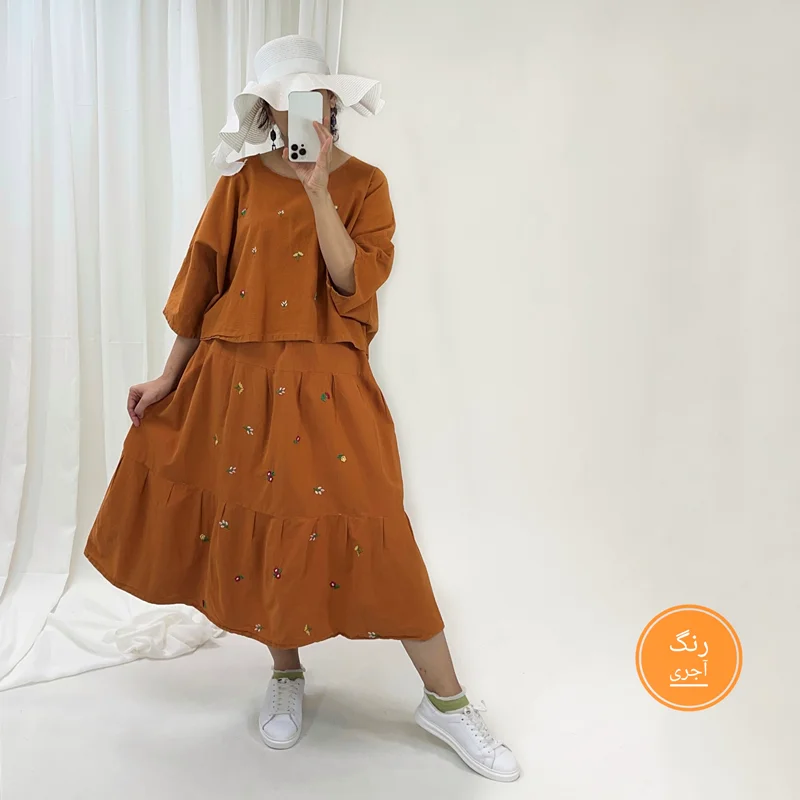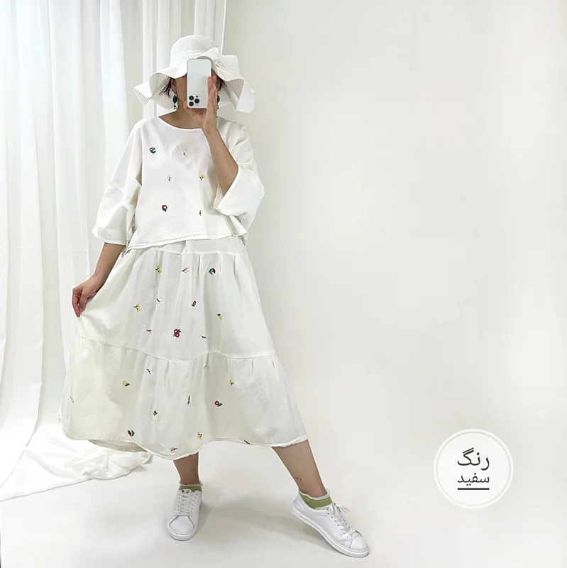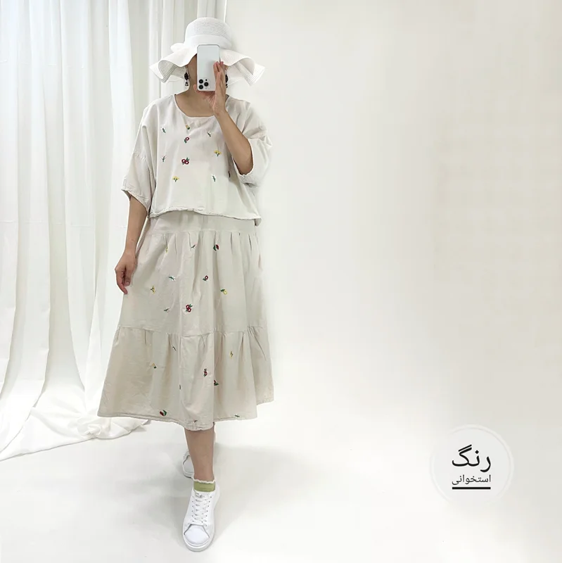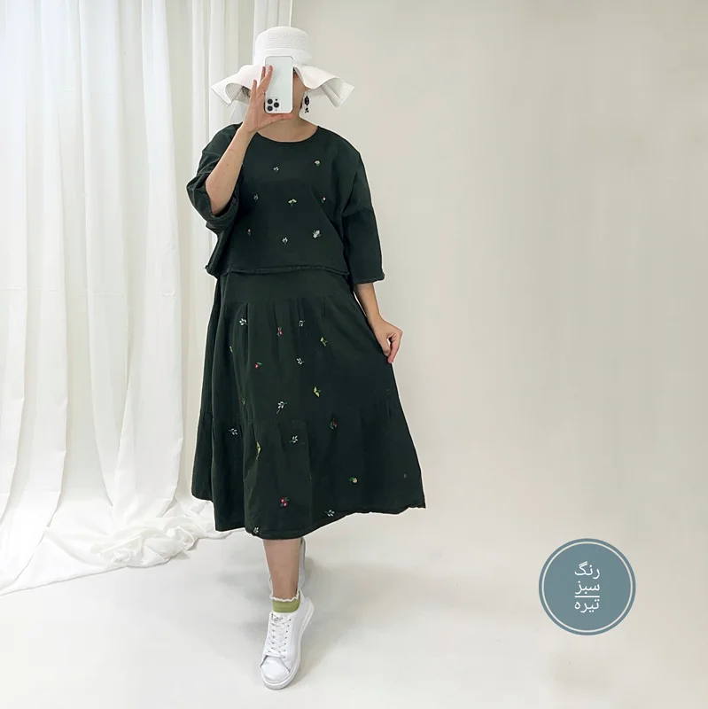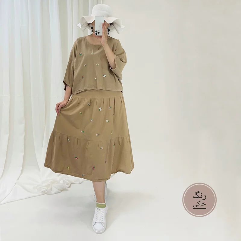 دامن : قد :۹۵ / کمر در حالت معمولی :۵۸ / در حالت کش :۱۲۰ / دور باسن :۱۲۰