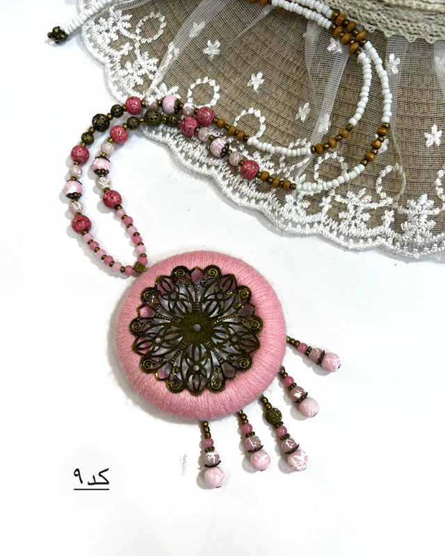 جنس: بافت، فلز برنز رنگ ثابت، کریستال، مهرههای چوبی